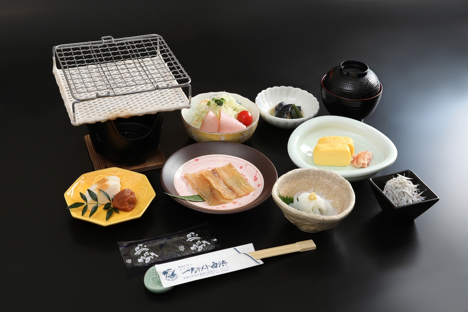 太刀魚のみりん干しや紀州南高梅など、地元の滋味が一日の始まりをやさしく彩ります。