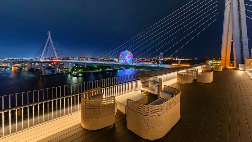 大阪ベイを望む広大なテラスと天然温泉の大浴場を備えた都市型リゾートホテル。
