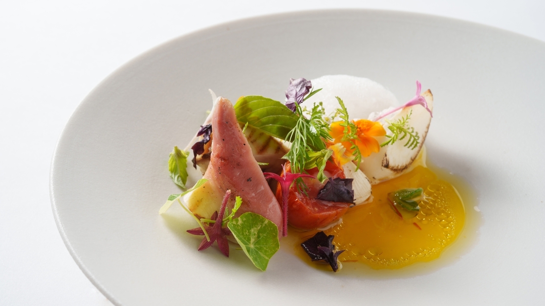 地元指定生産者より届いた「有機野菜」をふんだんに使った、新感覚のフレンチをお愉しみください