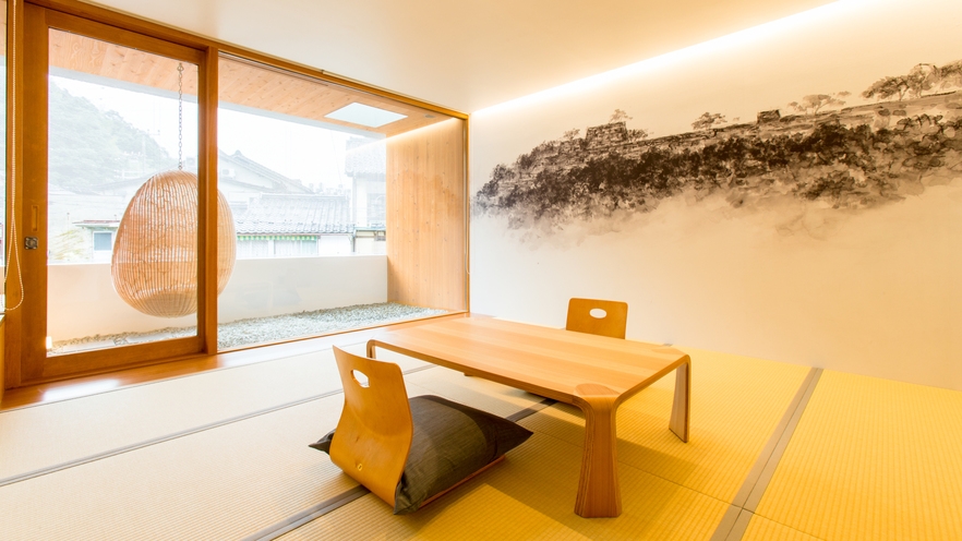 つちや旅館の新館として2018年に城崎旧消防署をリノベーションし2019年にはグッドデザイン賞をした建物です。1階にはおしゃれなカフェ&日本画ギャラリーを併設しておりワーケーションにも最適です。