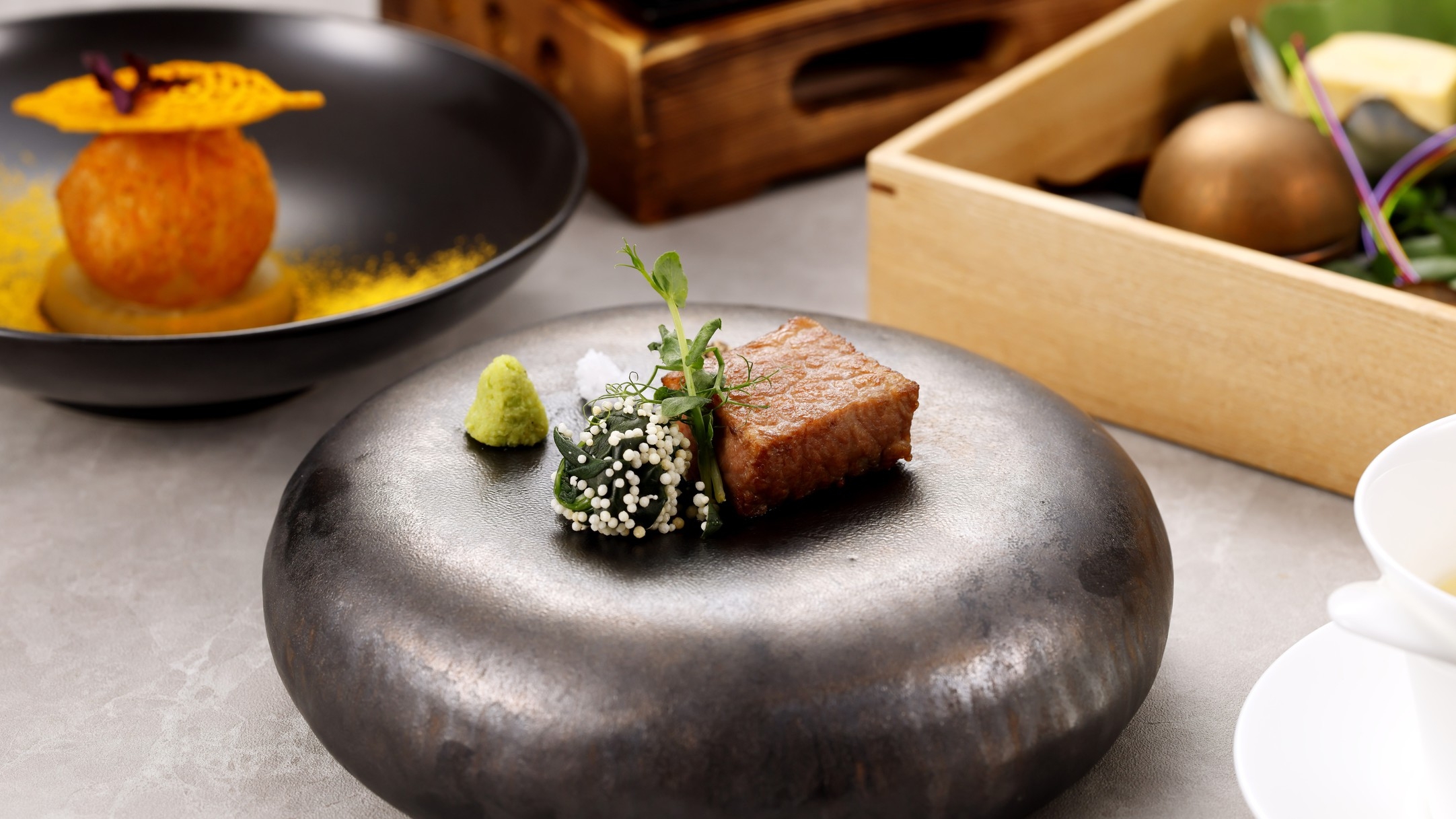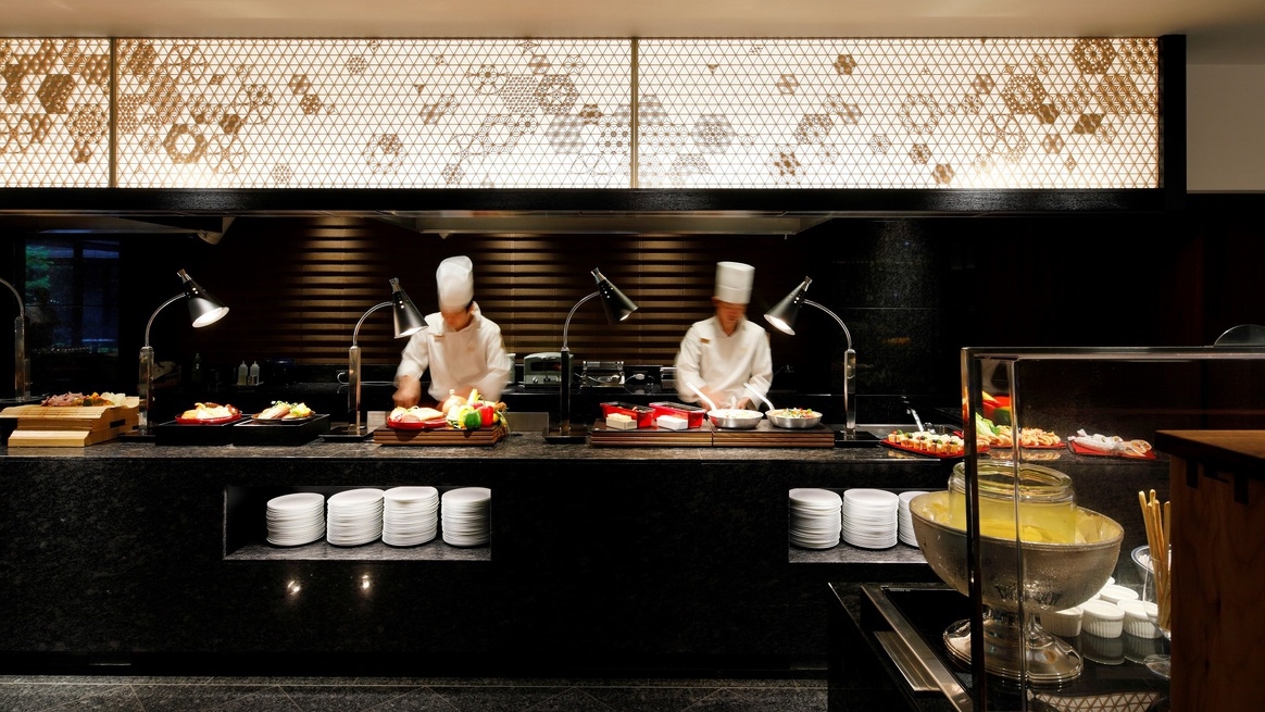 ライブキッチンでの鉄板焼きや旬菜の天ぷらなど