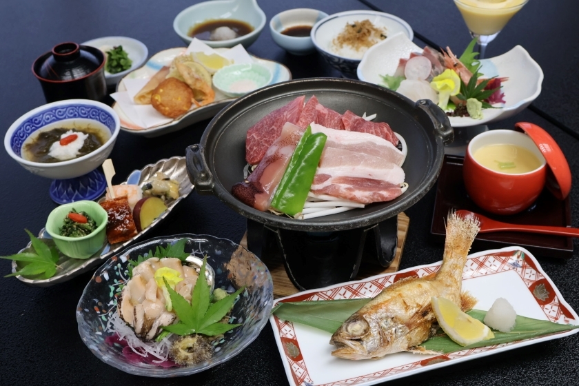 新鮮な食材を県内の市場から毎日仕入れ、日本海の「海の幸」、加賀の「山の幸」に恵まれた地元食材で四季折々、旬の味を心ゆくまでご堪能くださいませ。