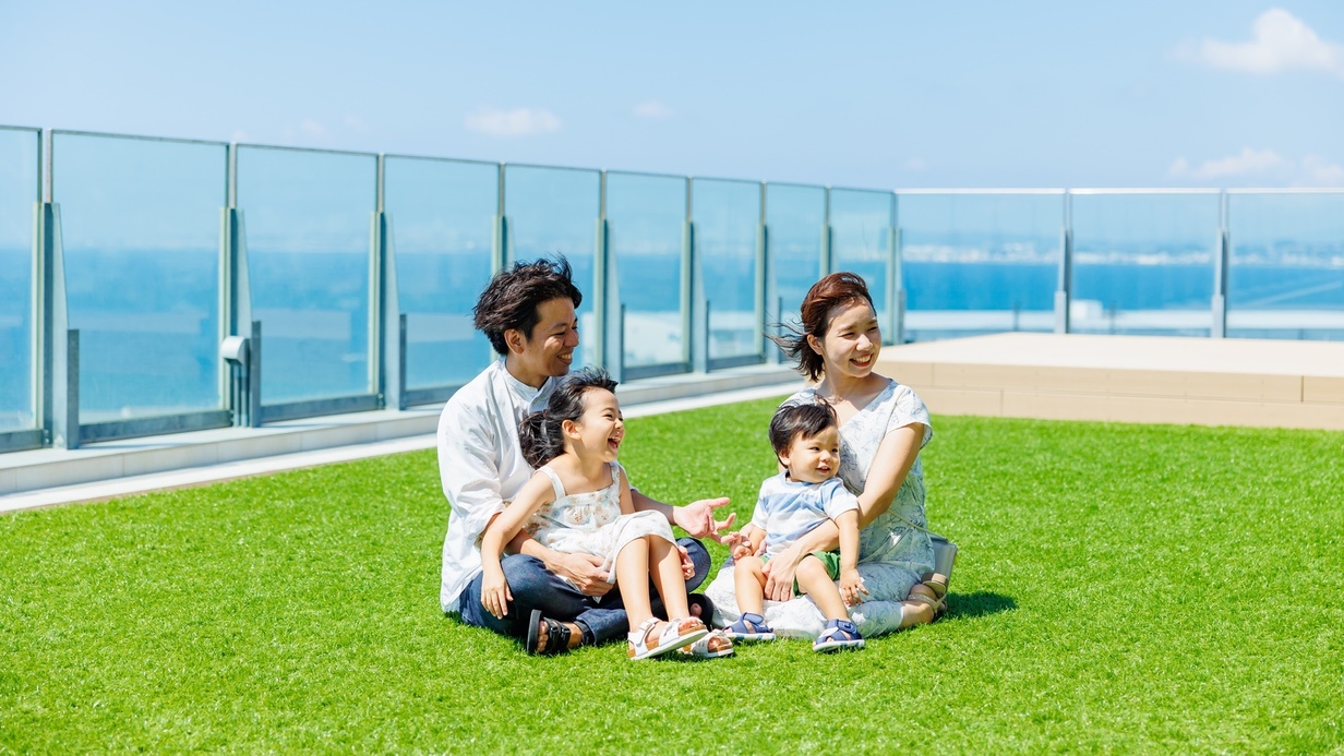 地上9階にあるルーフトップガーデンで遊んだり、お部屋でゆっくり寝転んだり。