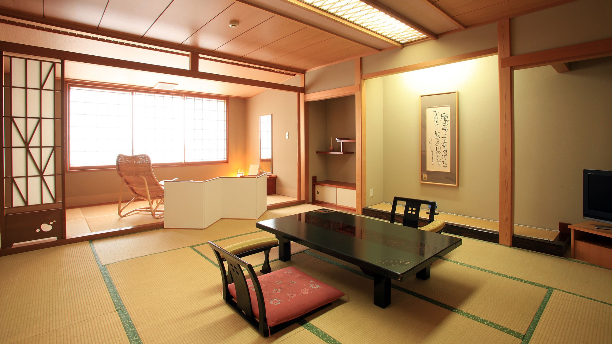 12.5畳の広々とした和室と、語らいのひとときに花を添える広縁も設えております。