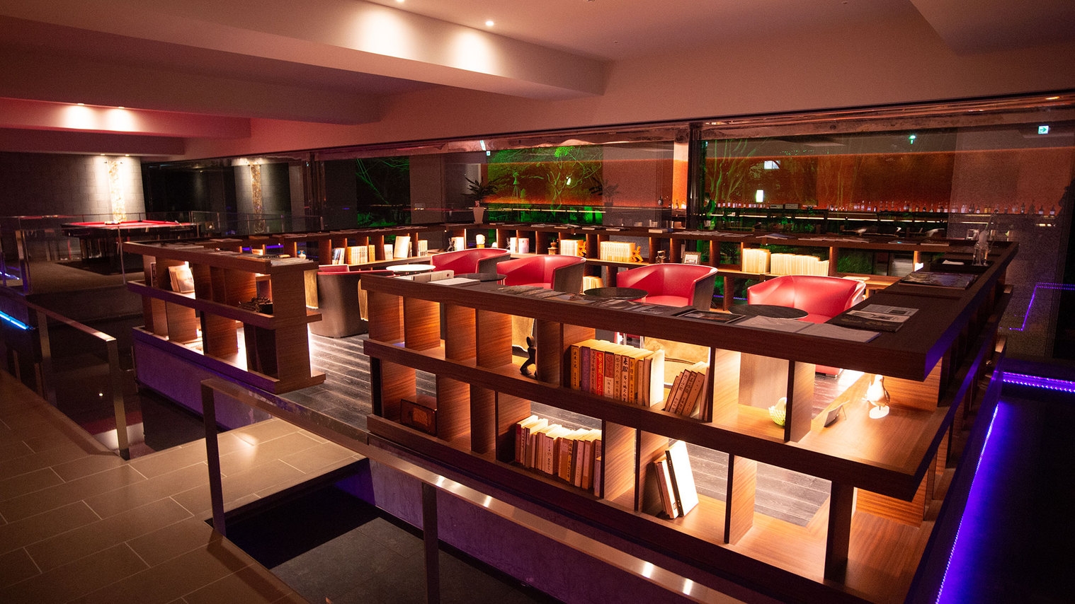 最上階にしつらえられたサロンからの眺めは函館の夜景が星のように眼下に輝き、まるで星空に浮かんでいるかのような気分に。
