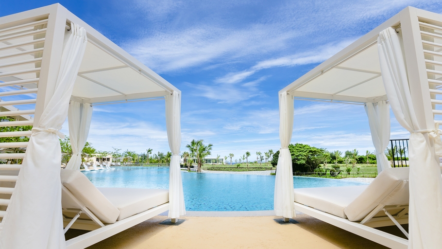 館内にはプールやフィットネス・スパがあり、透明度抜群の瀬底ビーチは徒歩すぐ。