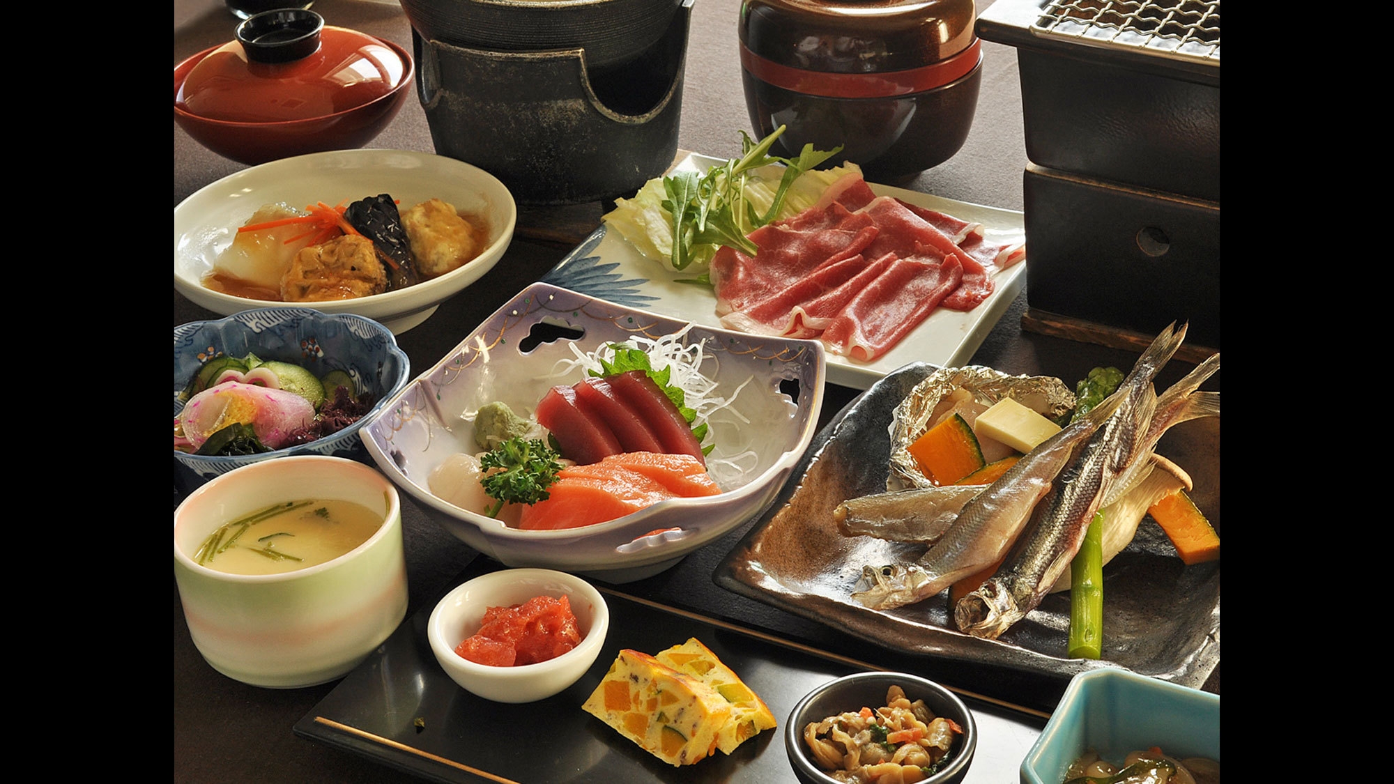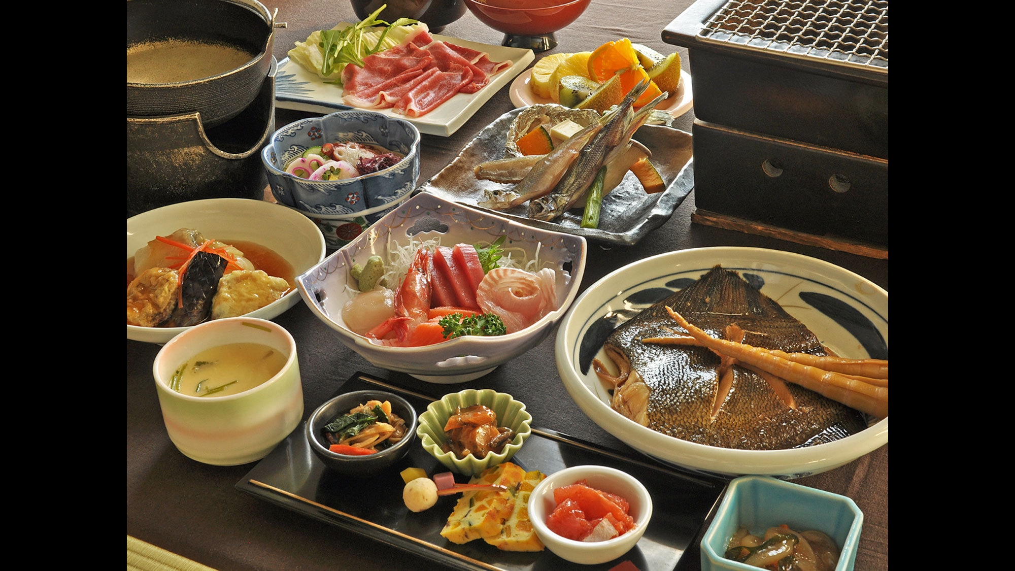 ≪献立≫:前菜・お刺身・茶碗蒸し・酢の物・炭火焼き