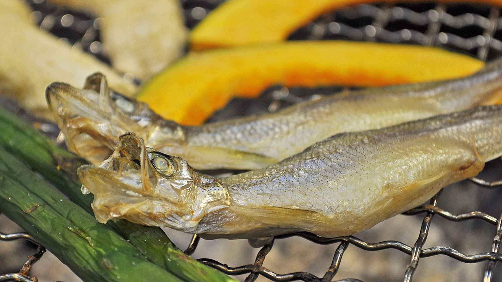 夕食に名物の『ししゃも』や、お野菜やホイル焼き等の『炭火焼き』が